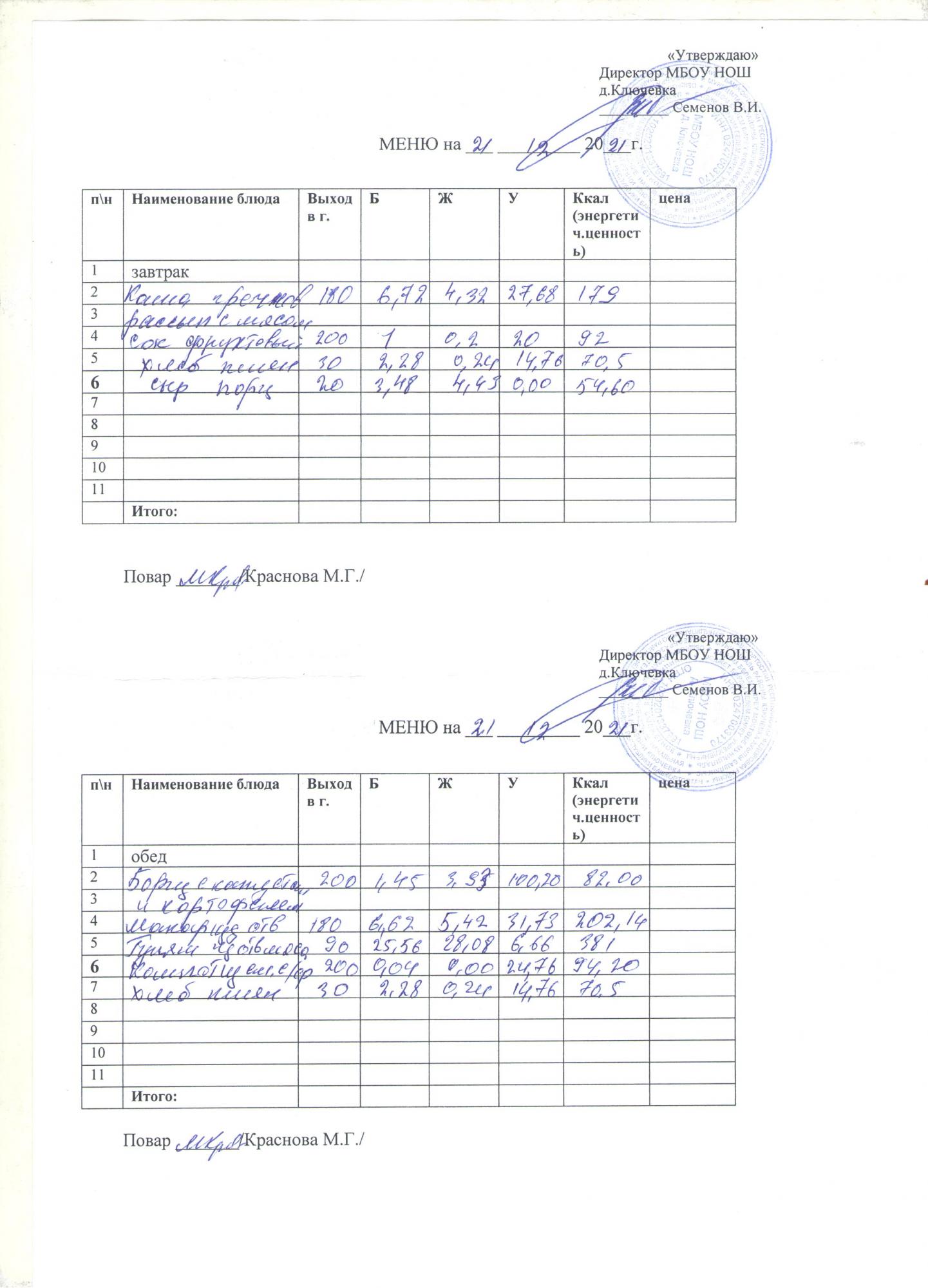 меню на 21 декабря
