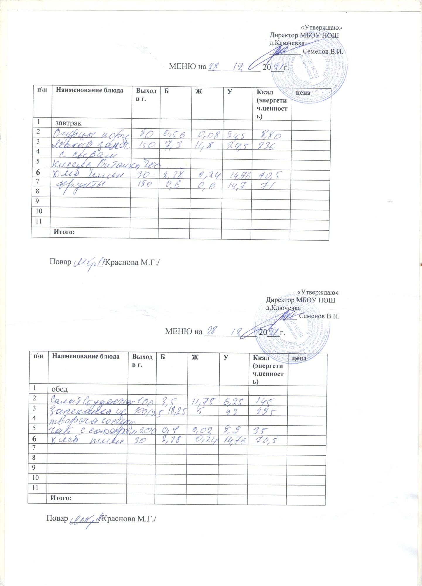 меню на 28 декабря