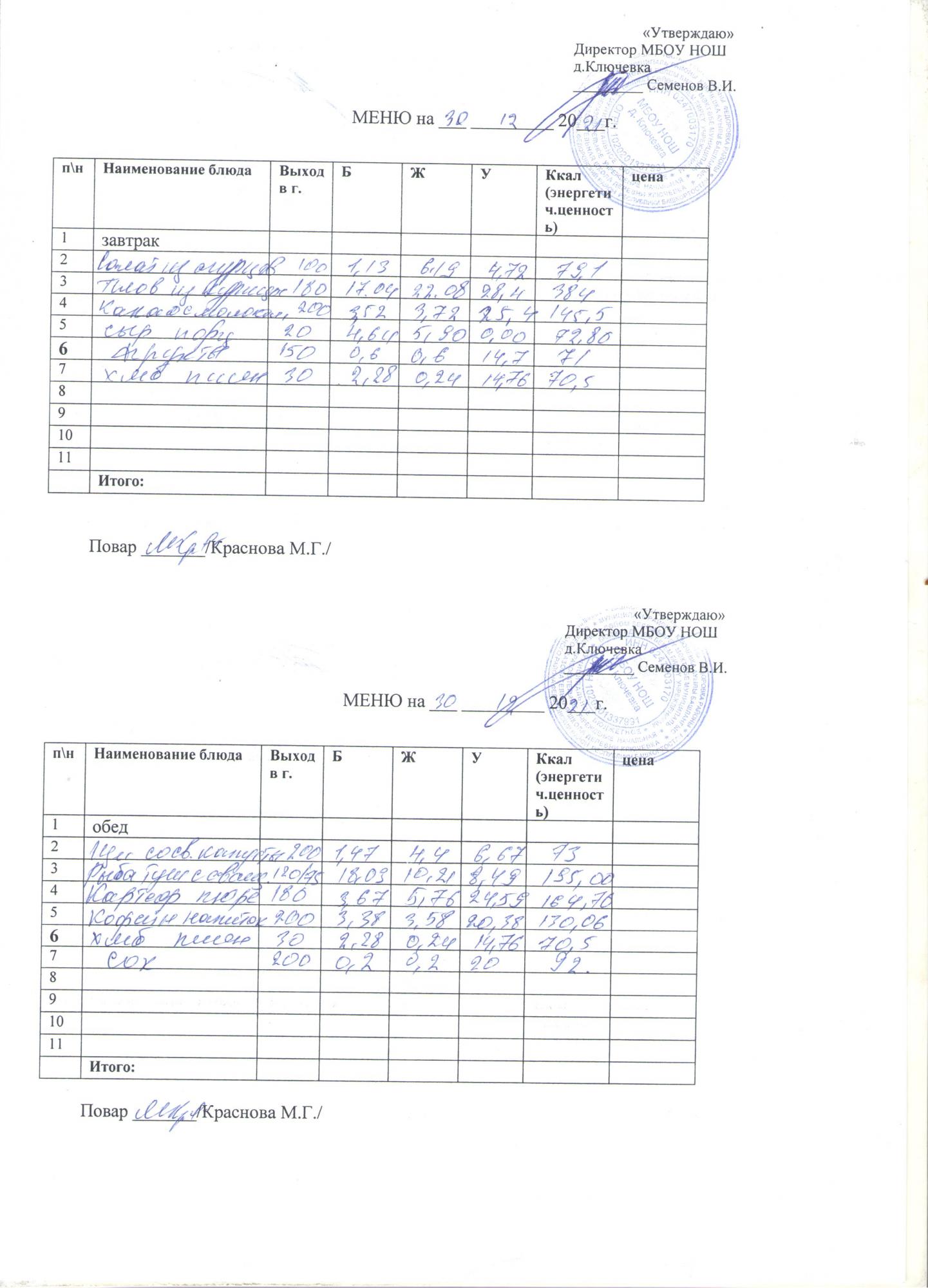 меню на 30 декабря