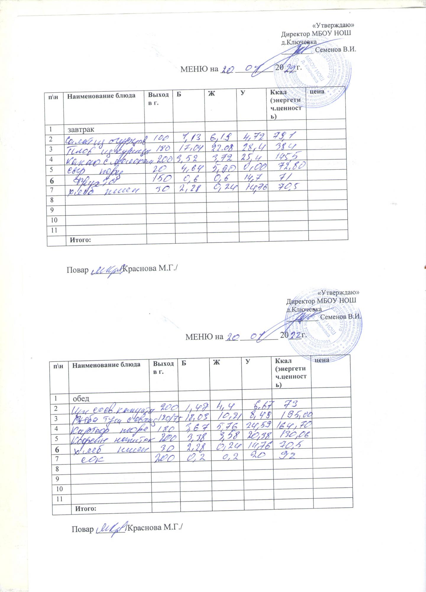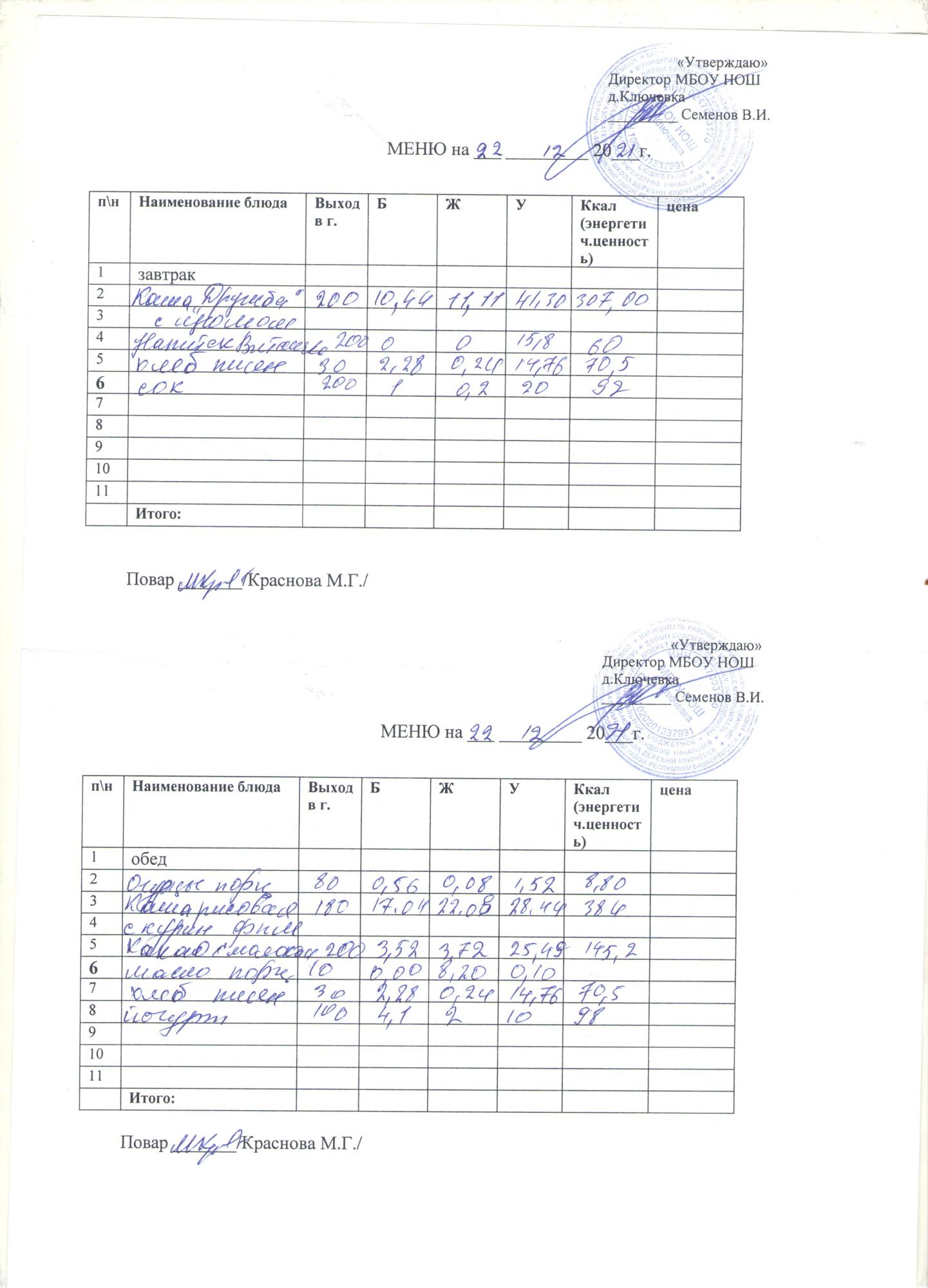 меню на 22 декабря