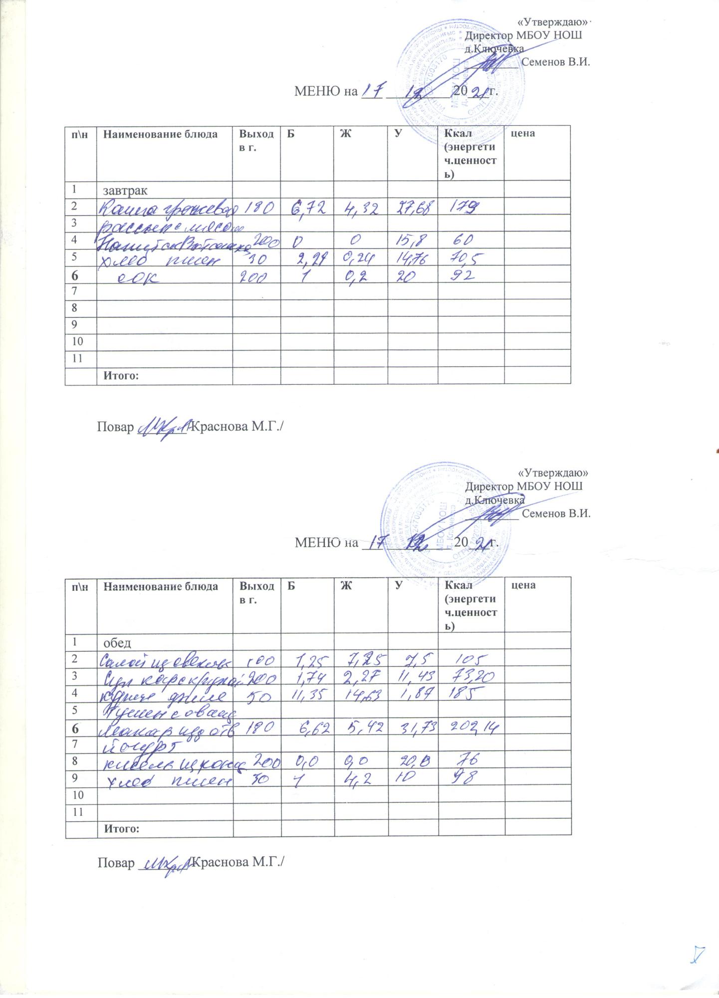 меню на 17 декабря
