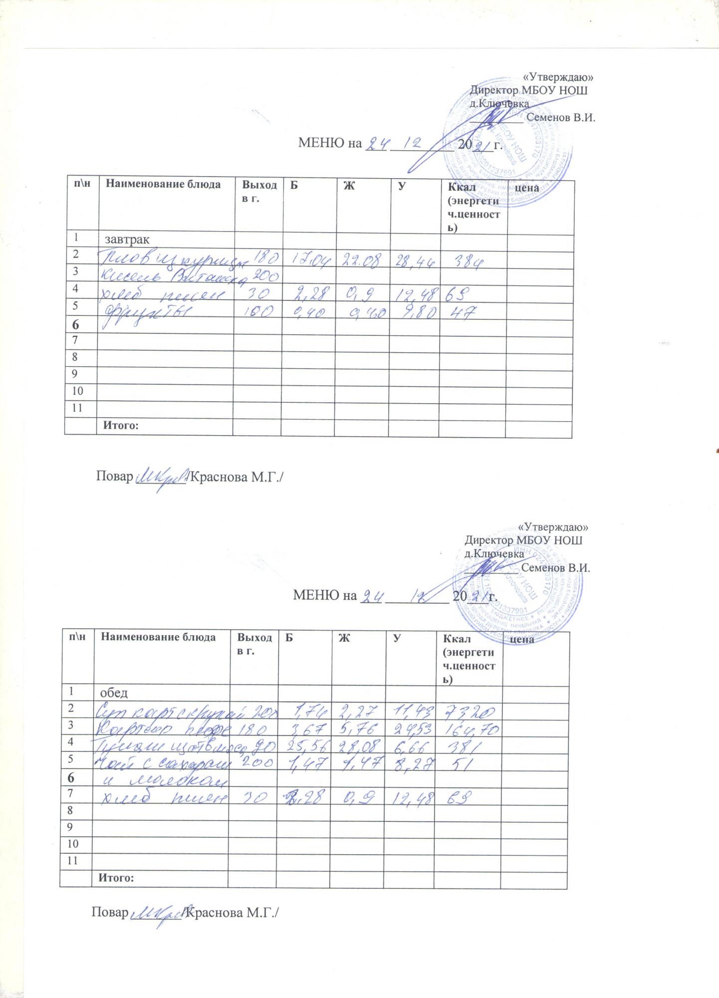 меню на 24 декабря