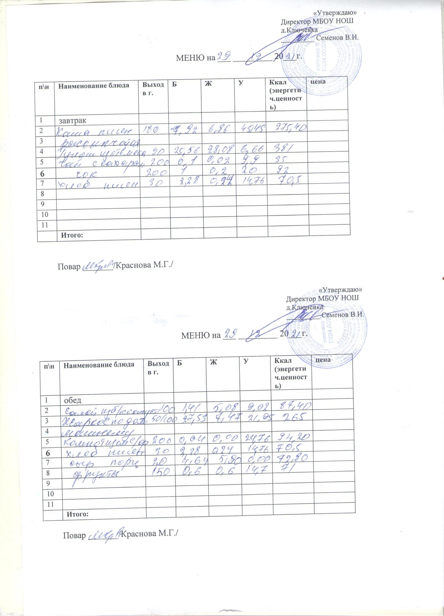 меню на 29 декабря