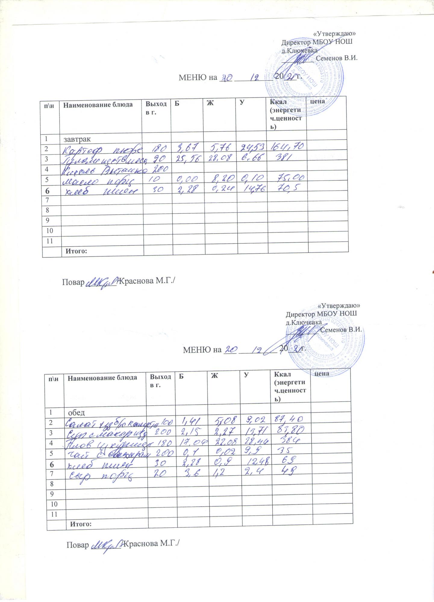меню на 20 декабря