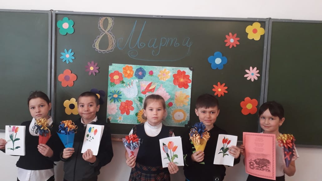В школе традиционно состоялись мероприятия, посвящённые Международному женскому дню 8 марта! Ребята выучили стихи, песни, выполнили поделки . Поздравления получили не только мамы, бабушки, но и сотрудники школы.